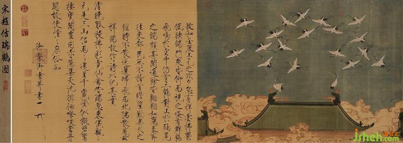 In ancient Chinese literature and painting there is a person most famous for drawing cranes, that is Zhao Biao, that is, Song Huizong, the eighth emperor of the Song Dynasty. Zhao Ji was in power for 26 years, and Zhao Jishan was painting and calligraphy. He invented a calligraphic font called "thin gold body" by later generations. He loved painting flowers and birds as "courtyard body". This is his "Rui he diagram".