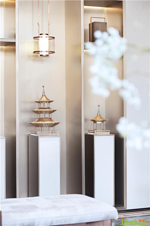 本案靈感來(lái)源于南宋李嵩的《西湖圖》,西湖不光有美景還有美麗的《白蛇傳》愛(ài)情故事。設(shè)計(jì)師把西湖的元素提取融入本案空間中。樣板房設(shè)計(jì)