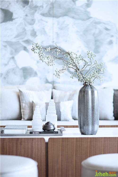 客廳墻面以“太湖石”元素作為空間亮點(diǎn),仿佛將太湖無(wú)限的風(fēng)光和歷史人文氣息帶入居室,使室內(nèi)空間顯得沉靜、韻味、充滿靈動(dòng),“雖為人做、宛自天開(kāi)”,最美東方莫過(guò)如此。