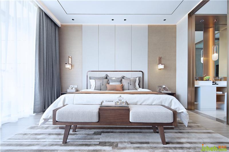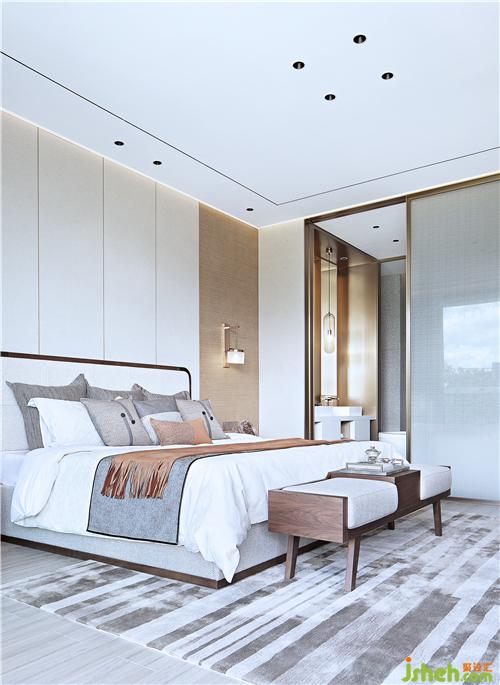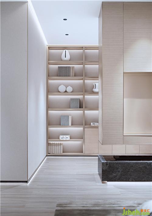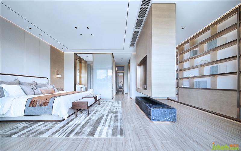 主臥在四樓,有一個超寬度的陽臺和落地玻璃,采光特別好。主臥書房,衣帽間,衛(wèi)生間等功能,為了把空間設(shè)計的更靈動和寬敞,書房的隔墻懸空,下方仿真火爐,天花平頂,四周洗墻燈帶。樣板房設(shè)計