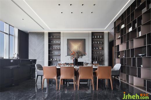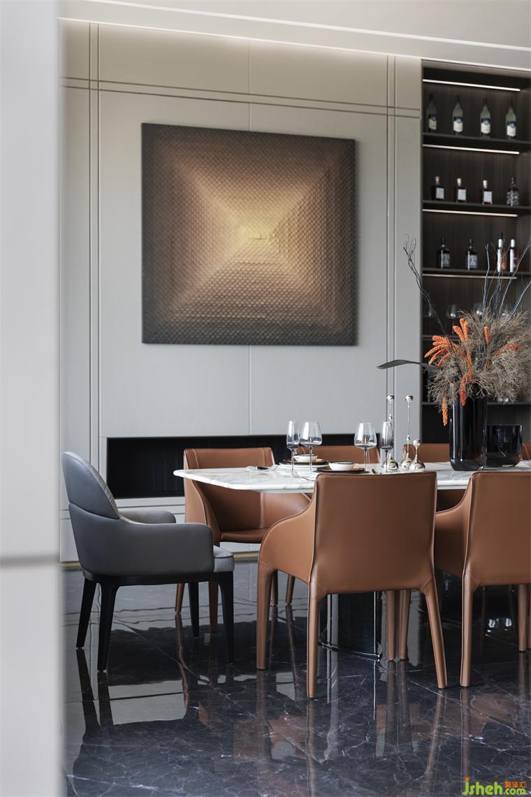 餐廳選用簡(jiǎn)潔的意式設(shè)計(jì)家具,注重線條的簡(jiǎn)潔和材質(zhì)的質(zhì)感。采用石材和真皮等高質(zhì)量材料,體現(xiàn)品質(zhì)感。