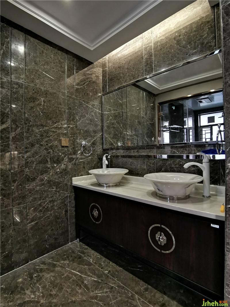 本項目面積為270方三層復式中空大廳戶型。風格定為現(xiàn)代時尚的新中式風。業(yè)主為職業(yè)教師,對美艷的新中式風尤為喜愛,設計時在現(xiàn)代時尚的手法上僅在意境上體現(xiàn)著簡約中式的表達方式,讓人既享受到時尚的優(yōu)雅,又感受到中式意境之韻,格調顯貴。本案例運用了大自然的天然石材-白金沙,該石材無論色澤或是紋理都渾然天成,一氣呵成,大氣灰宏,給人視覺沖擊甚為之高。整體空間均輔以奢華為代表的玫瑰金不銹鋼為裝飾線條,提升出時尚而奢華的空間氛圍和品位,兩側6米高的不銹鋼造型屏風以斜角45度為擺向,正如展示著主人趟開雙臂歡迎賓客一般,熱情,友愛,無比活躍。沙發(fā)背景墻面留白的處理,中間鑲嵌了一個整圓以美倫美奐的不銹鋼為邊,透著抽象的高低起伏的山群玻璃造型,正如每逢月圓人團圓的意境,更是增添了一份中式的神韻在此。室內設計師