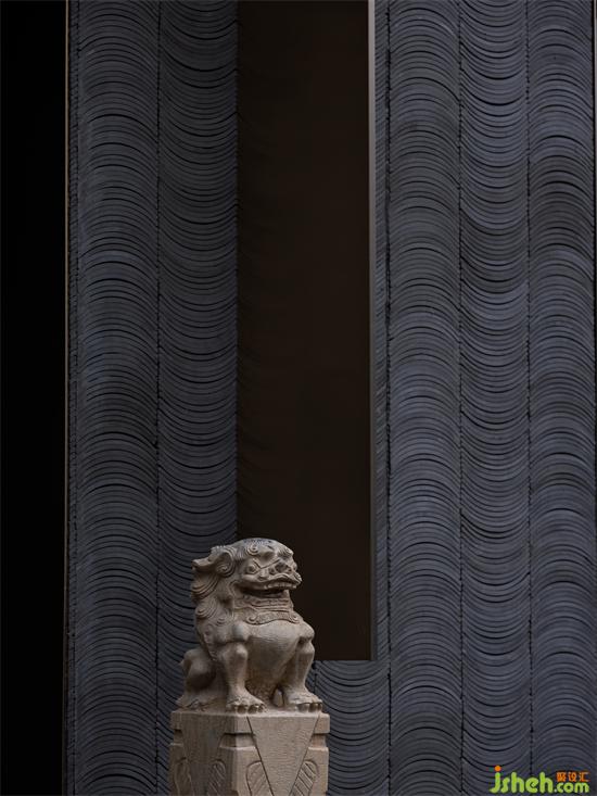 水墨畫線條勾勒出起伏的山脊線,設(shè)計以意造形,提取傳統(tǒng)建筑中的瓦屋頂、坡屋面元素,營造出當(dāng)代語境中的山水意象。青瓦、舊木排列重組,具有想象空間的留白,儒雅的書院氣質(zhì)渾然天成。新的介質(zhì)參與,使空間與舊街區(qū)產(chǎn)生一種新的關(guān)聯(lián)。