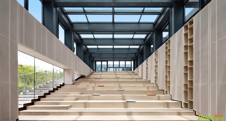 通透的落地幕墻模糊室內與室外的界限,科普教育館設計讓陽光與自然最大程度流入室內,身臨其境感受自然的魅力,通過物質的透營造空間組織的透明性。