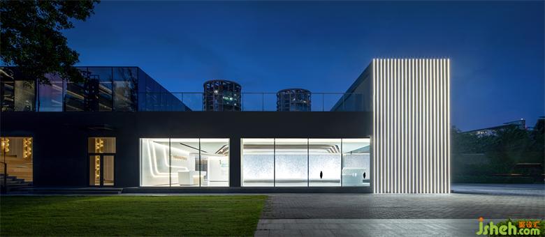 科普教育館設計師將原有建筑拆解、重構,將若干個盒子連接構成建筑主體,完成了部分區(qū)域由室外轉化為室內空間的過程,盒子的相互連接最終將原建筑散落的碎片式空間融合為統(tǒng)一、整體的展示性室內空間。重構后的建筑主體宛若發(fā)光的盒子,在暮色中散發(fā)光芒。