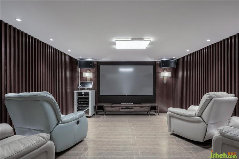本案空間布局上較原建筑平面有較大改動。負(fù)一層設(shè)計了影音室。