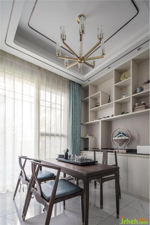 一層客廳和餐廳都獨立空間,并且在原餐廳陽臺位置往外拓展了獨立茶室深圳別墅裝飾,并將原老人房和廚房位置對調(diào),這樣老人房可以做成一個帶衛(wèi)生間的套房。