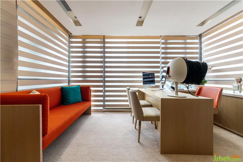 空間布局上:本案是由200平米大平層住宅改造二層,故在空間布局上稍稍受到格局限制。但是設(shè)計(jì)師還是精心打造了前臺接待區(qū)、等候休息區(qū)、美容顧問室、公共衛(wèi)生間、美牙室、頭皮管理室、桑拿房、調(diào)料室,以及2間雙人美容VIP,2間單人美容VIP,其中單雙人VIP各有一間帶獨(dú)立浴缸。