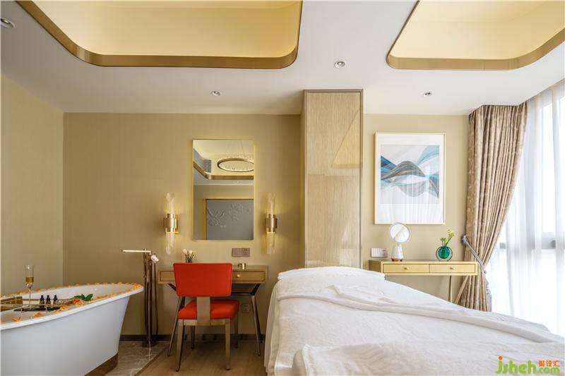 進(jìn)入VIP區(qū)走廊首先見到的是大消毒柜,服務(wù)員陪同客戶順便從消毒柜取好毛巾,再陪同客人進(jìn)入房間更衣。VIP走廊地面是進(jìn)口防水木地板 ,天花燈帶顏色根據(jù)每個客戶喜好調(diào)節(jié)燈光顏色,深圳美容會所設(shè)計(jì)墻面進(jìn)口墻布是溫馨的暖灰色,讓客戶有歸家的感覺,走廊裝飾畫盡顯濃濃的女人味。走廊端頭是小巧玲瓏的桑拿房,可同時供兩位女士使用。