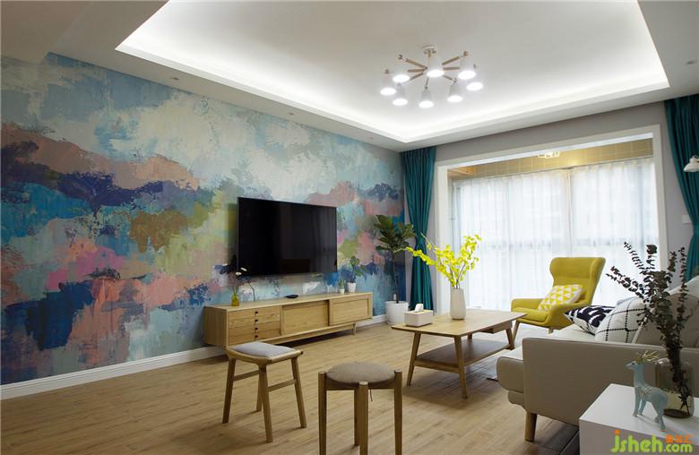 電視背景墻是訂制的壁畫,可能有些人覺得亂,但室內(nèi)設(shè)計(jì)師一眼就選定了。紛繁的顏料,層層疊疊的渲染開來,就像本案的主題,五彩繽紛的日子~