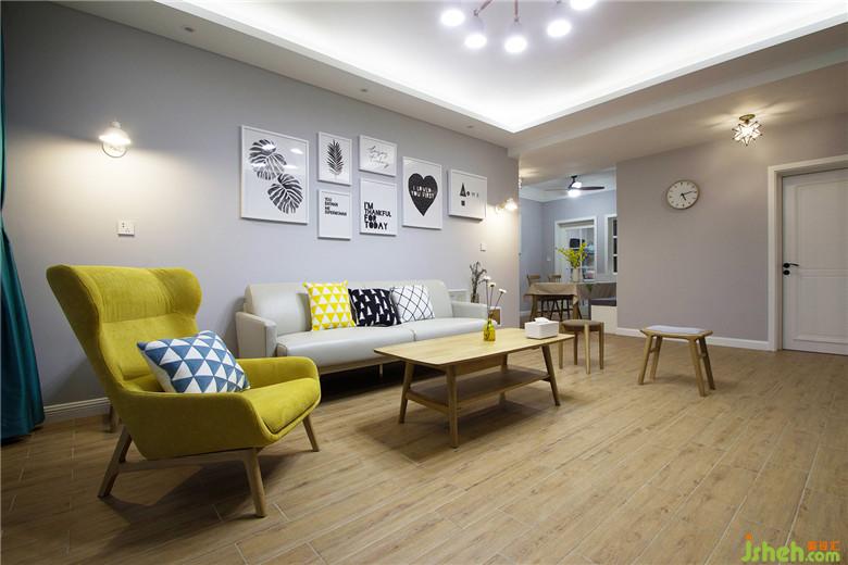 墻面室內(nèi)設(shè)計(jì)師采用灰色墻漆,地面鋪的仿木地板瓷磚,兼具木地板的效果同時也方便打理。
