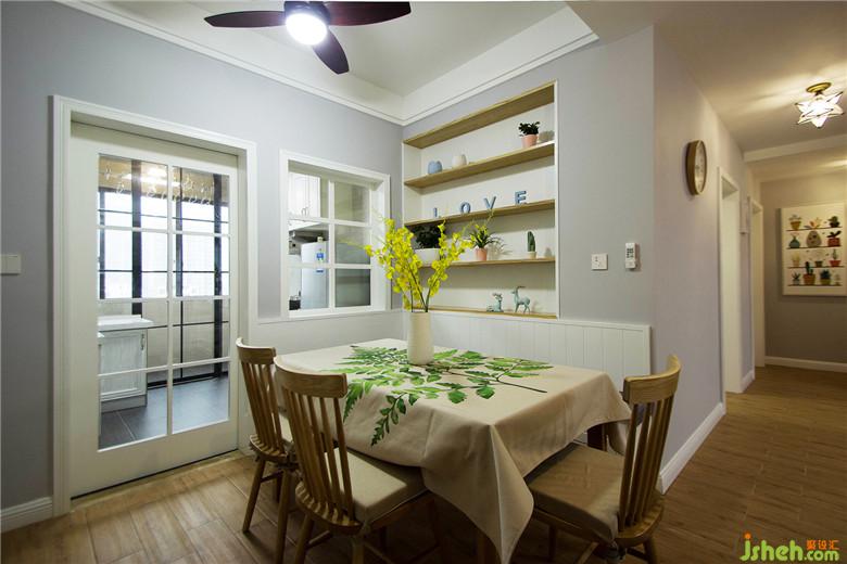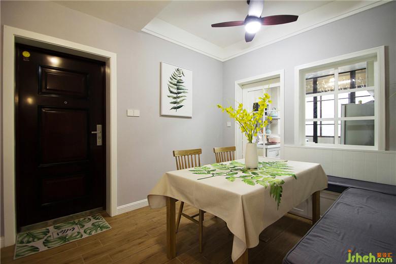 墻上的金星蕨掛畫與桌布相呼應(yīng),風(fēng)扇吊燈么......為實(shí)用考慮啦~
