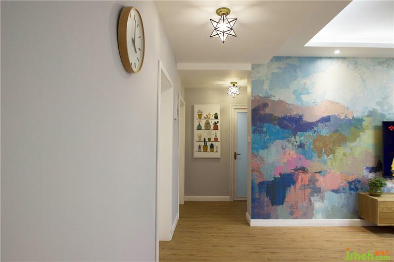 六芒星燈讓過道不那么單調(diào),玄關(guān)掛一幅簡(jiǎn)單的畫兒就好。