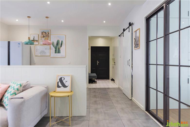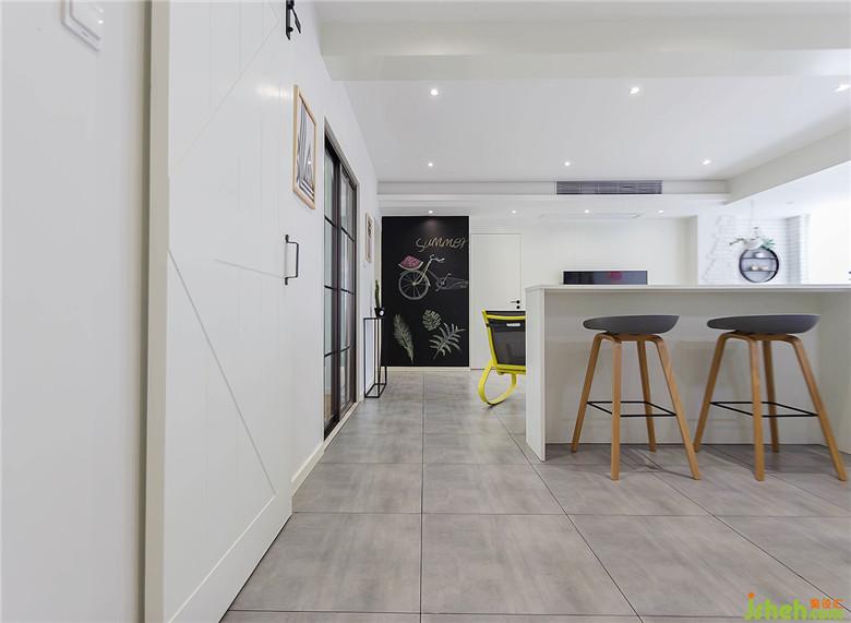 廚房室內(nèi)設(shè)計師采用了網(wǎng)紅谷倉門,不僅簡潔大氣,相比推拉門更省空間。