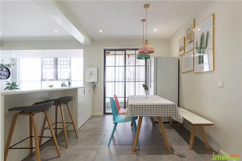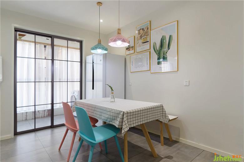 粉、藍(lán)色北歐餐椅,與吊燈顏色相響應(yīng),自然清新的裝飾畫,更顯小清新氣質(zhì)。