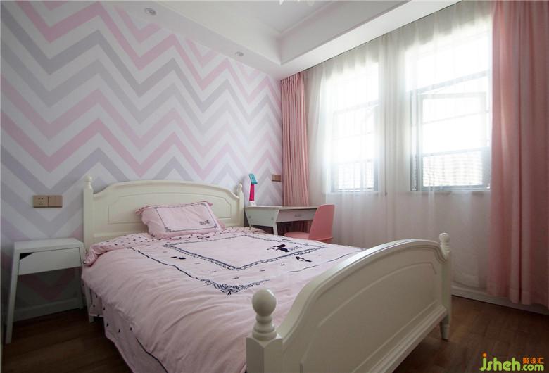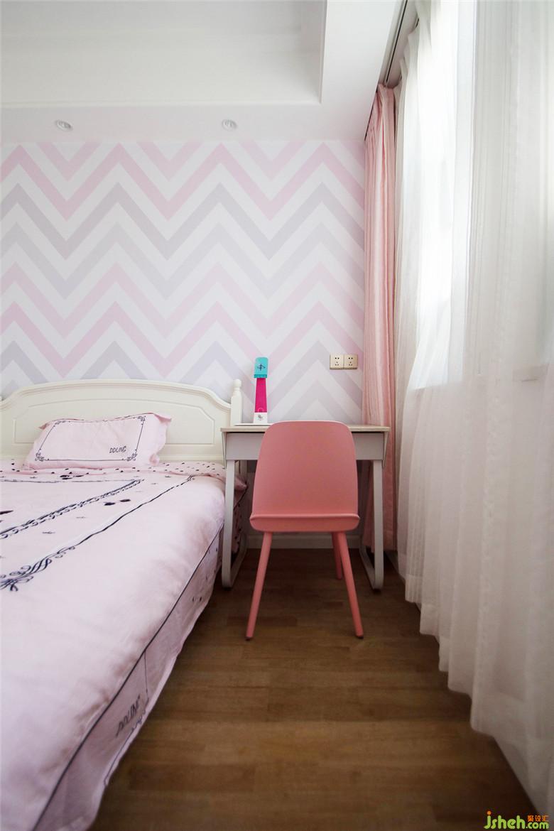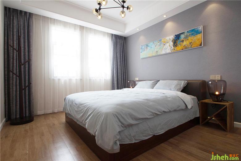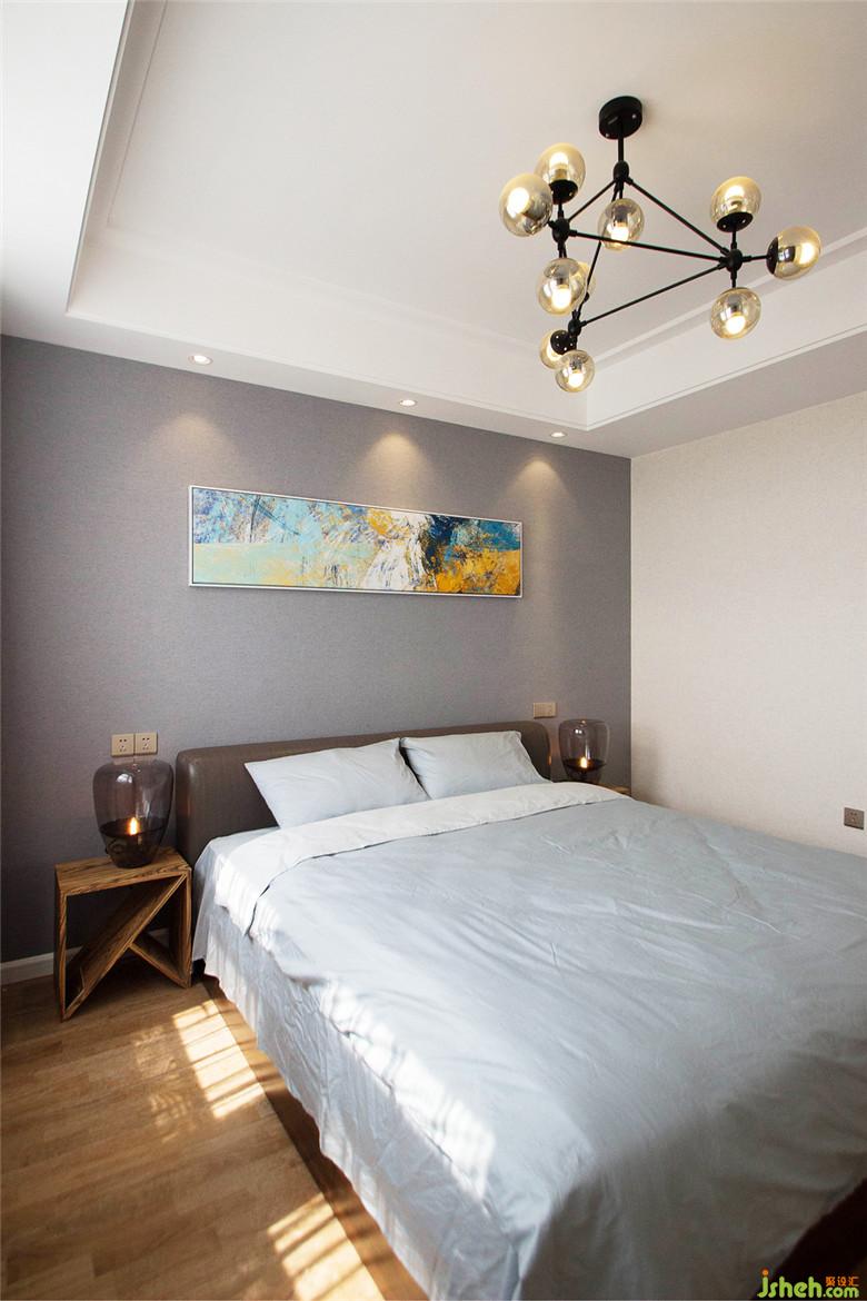 主臥室內(nèi)設(shè)計師使用配色更加清淡,營造舒適的休息空間。