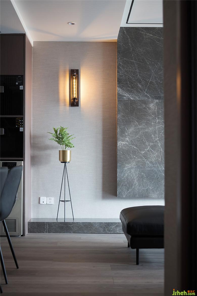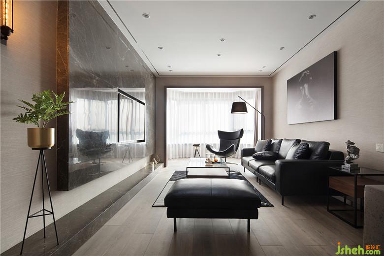 室內(nèi)設(shè)計(jì)師以黑色、咖色作為空間的主色調(diào),在視覺上協(xié)調(diào)統(tǒng)一。著重突出石材、皮革、墻布這幾種材料的質(zhì)感。以達(dá)到“簡(jiǎn)約而不簡(jiǎn)單”的效果。