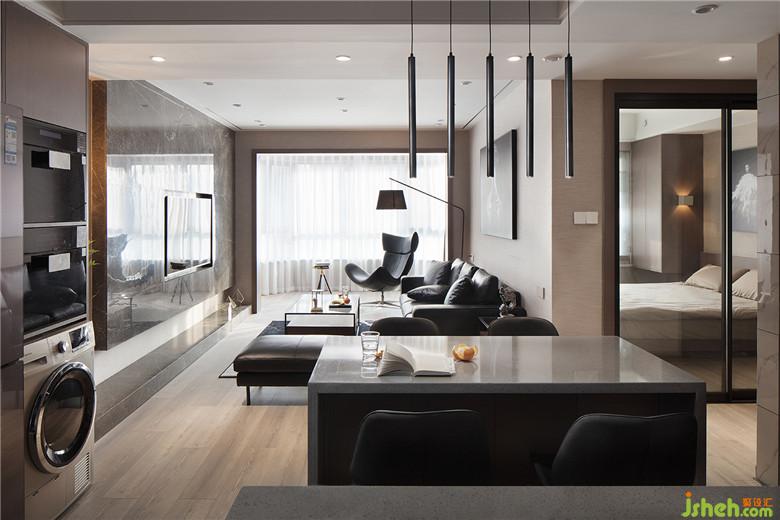 廚房室內(nèi)設(shè)計(jì)師做開放式是小空間變大的法寶。打掉原廚房的兩面墻,把櫥柜往過道延伸的同時(shí),將就餐功能納入廚房,是餐桌也是中島。