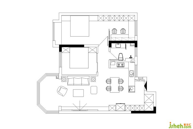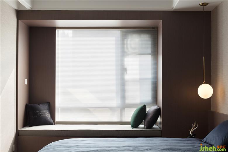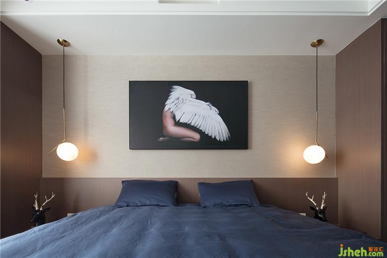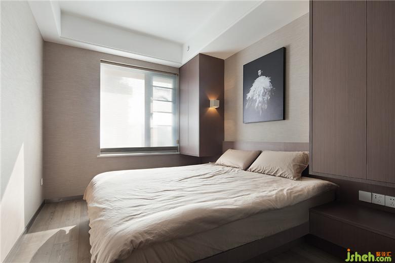所有木作部分均為現(xiàn)場制作,投影儀被吊頂上的長方形盒子完美隱藏。床頭柜右側(cè)的柜子里同樣藏著女主人的梳妝臺。