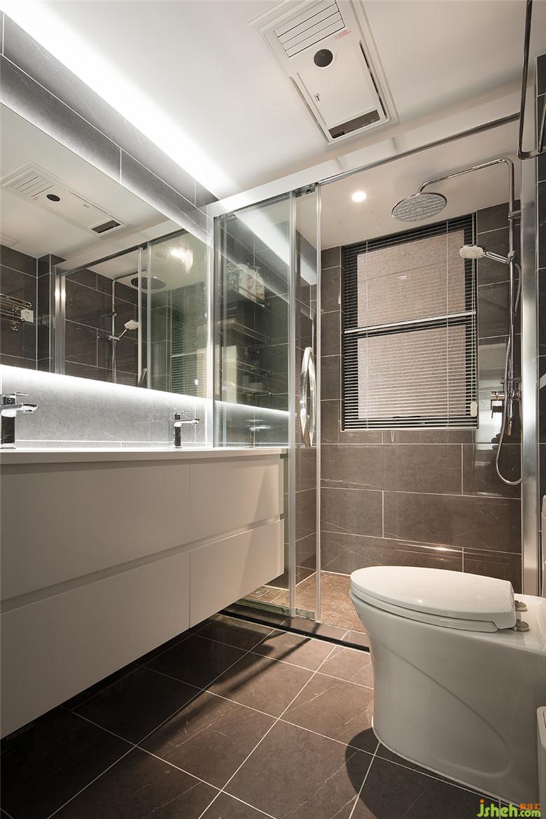 衛(wèi)生間室內(nèi)設(shè)計師做了雙臺盆的設(shè)計,滿足同時使用的需求。