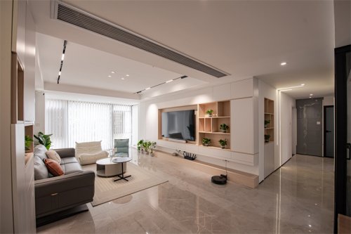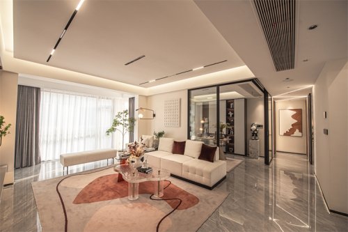 在客廳區(qū)域,設(shè)計(jì)師選擇淡色作為墻面主色,運(yùn)用不同材質(zhì)搭配立體感,室內(nèi)設(shè)計(jì)師為整個(gè)空間鋪墊低調(diào)優(yōu)雅復(fù)古的基調(diào)。