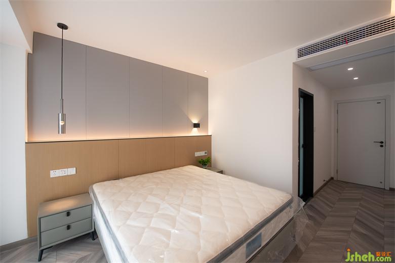 空間以白色及木色調(diào)為基底,大平層裝修設(shè)計(jì)搭配灰色的皮質(zhì)沙發(fā)、夢(mèng)幻簾,在良好的采光下營(yíng)造出透亮潔凈的視覺感受。