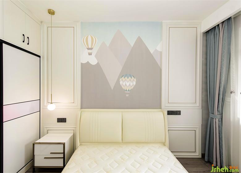 女孩房粉色調(diào)更為吸晴,床頭兩側(cè)墻板立體造型、裝修中間搭配童趣壁紙作為點(diǎn)綴,與屋外中性色調(diào)對(duì)比,少了點(diǎn)嚴(yán)肅,多了份溫柔。裝修