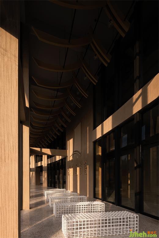 圖書館設(shè)計(jì)主題建筑的形狀,兩個(gè)球的概念。(主建筑的形狀是根據(jù)海岸線的自然形態(tài)。同時(shí)定點(diǎn)了園區(qū)內(nèi)的重要建筑和景點(diǎn),形成了兩個(gè)直徑分別150和180米的大圓圈,透過自轉(zhuǎn)360度的互相重疊而形成的一種「參數(shù)化」數(shù)據(jù)而演變出來的形態(tài)、這些都意味著這個(gè)社區(qū)的靈魂精神元素都被收集在這個(gè)建筑內(nèi)。)