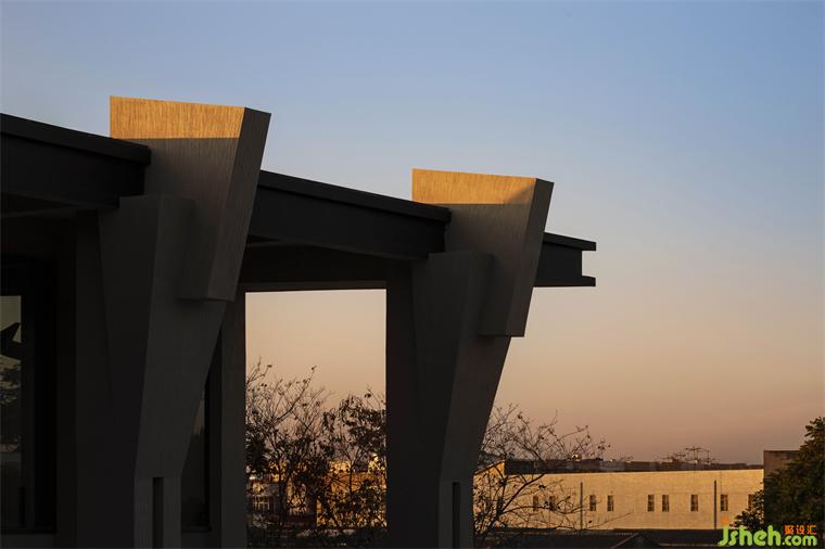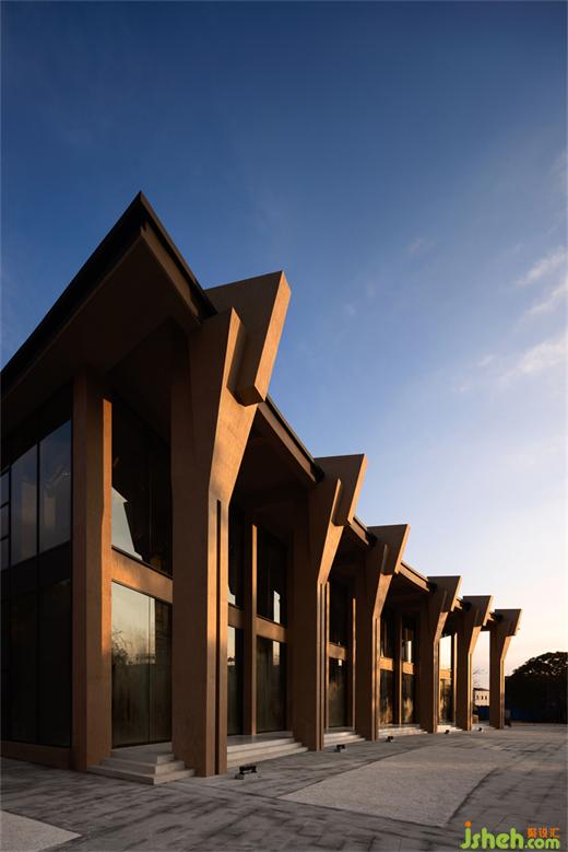 圖書館設(shè)計(jì)門口柱子的鞠躬 (門口六根柱子是安招人體進(jìn)行15度微微鞠躬的形態(tài),朝向萬人冢方向,低調(diào)地向他們致敬默哀,是以建筑給歷史作出敬畏的手法。 同時(shí)15度鞠躬的形態(tài)體現(xiàn)出孝道(百善孝為先)和處世的對(duì)人對(duì)物要抱著恭敬的態(tài)度。)