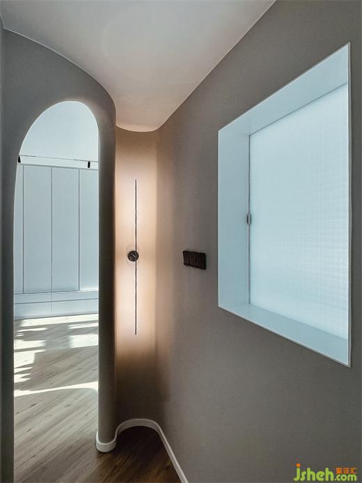廖奕權(quán)為調(diào)整藝術(shù)品尺寸設(shè)計(jì)了后墻,并在客用浴室對(duì)面的墻壁上建造了一個(gè)小門。當(dāng)男戶主完成繪畫后,他通過小門傳遞臟調(diào)色盤和畫筆,輕松穿過狹窄的走廊,進(jìn)入浴室進(jìn)行清潔。