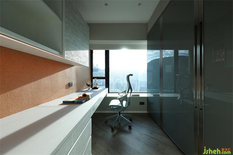 由于他們希望充分利用自然光和城市景觀,夫婦在客廳也決定不使用窗簾。由于缺乏軟裝飾,廖奕權(quán)認(rèn)為公寓的聲學(xué)舒適性可能會(huì)受到影響,于是他提出使用吸音壁紙(而不是最初的灰泥飾面)來防止更大的空間產(chǎn)生回聲。