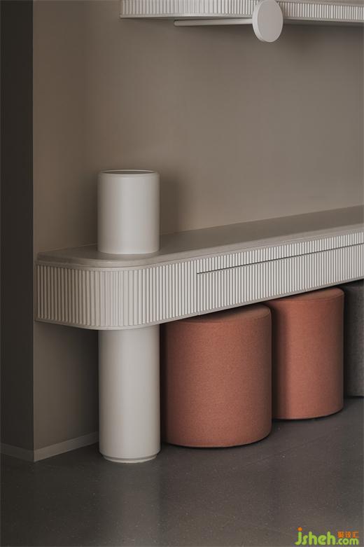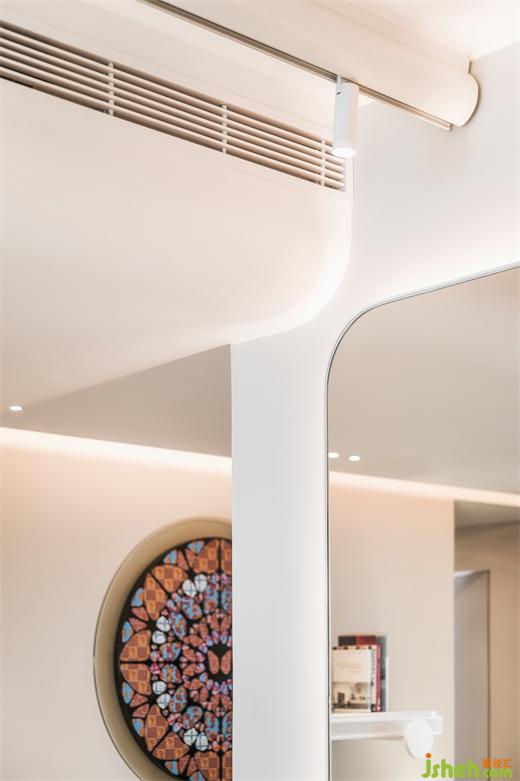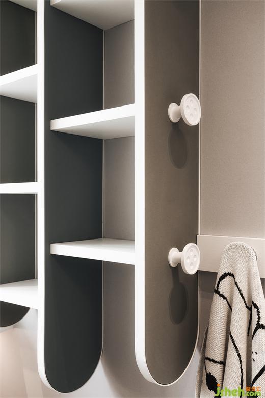 本案屬于一個(gè)年輕的四人家庭,戶(hù)主夫婦不滿(mǎn)足于尋常俗套的設(shè)計(jì)模式。 最后他們挑選了對(duì)空間及藝術(shù)均擁有過(guò)人觸覺(jué)的設(shè)計(jì)師全權(quán)為新居進(jìn)行規(guī)劃。 單位間隔作為整體設(shè)計(jì)的重要 框架,設(shè)計(jì)師今次亦從平面圖開(kāi)始,以宏觀的角度,為居者塑 造最實(shí)用適意的生活空間。 首先,玄關(guān)旁邊的廚房面積較大, 設(shè)計(jì)師將部分空間規(guī)劃出換鞋區(qū)及鞋柜,從而豐富空間機(jī)能。 另外,玄關(guān)區(qū)以一高一矮的掛墻抽屜柜作為空間的過(guò)渡與后續(xù),同時(shí)為常用小物及藥品等提供方便的收納位置。