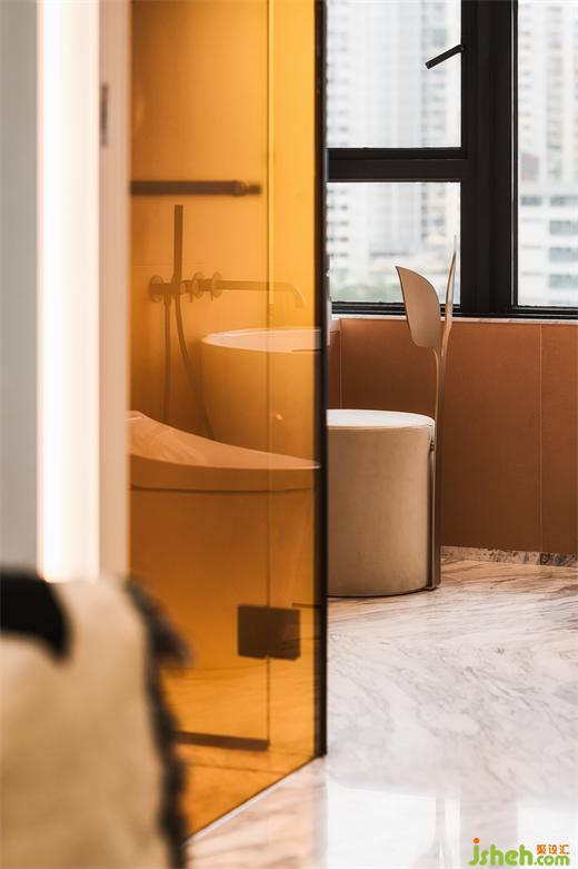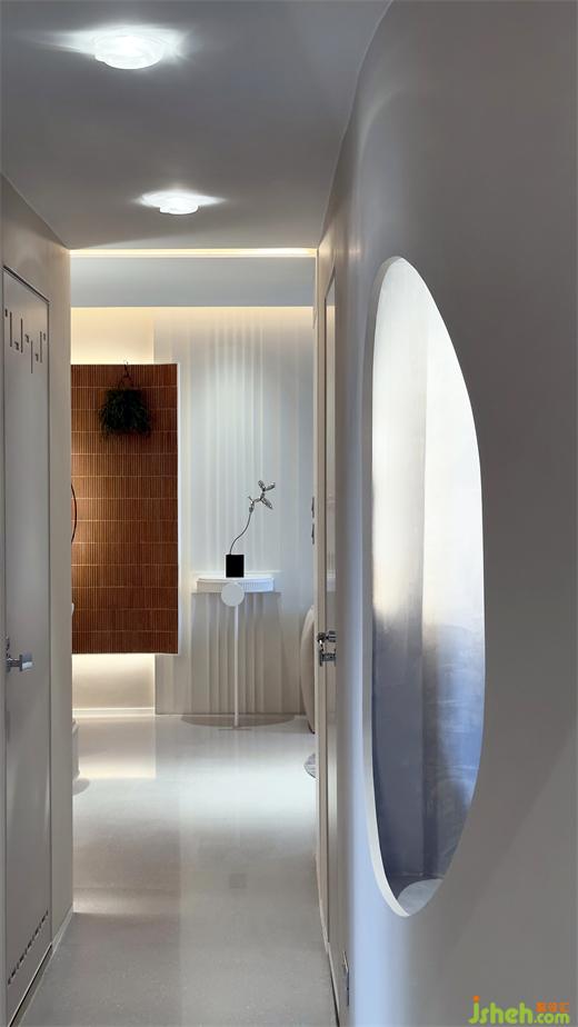 4.直條子特色同樣蘊(yùn)含圓弧元素,在天花滲光的烘托下更見層次感。