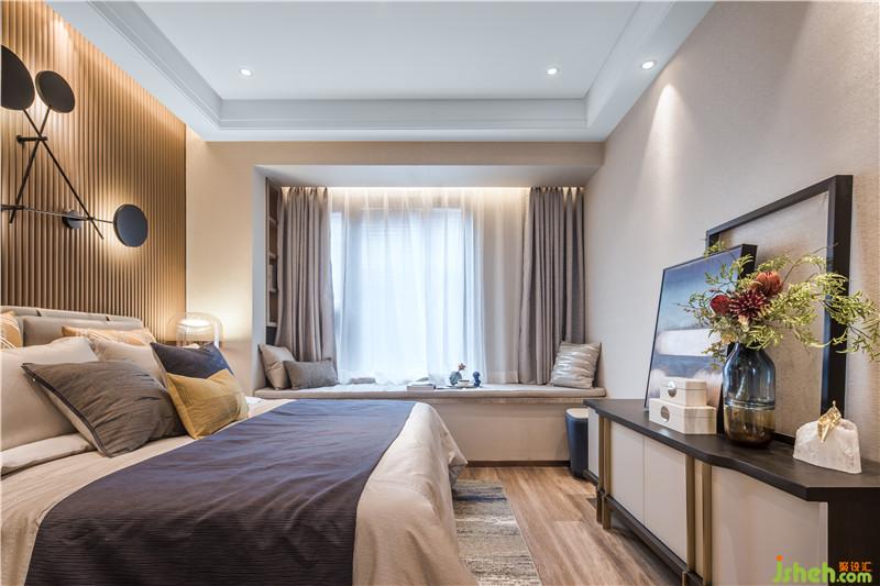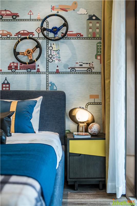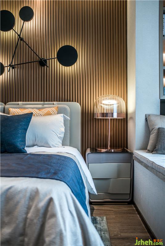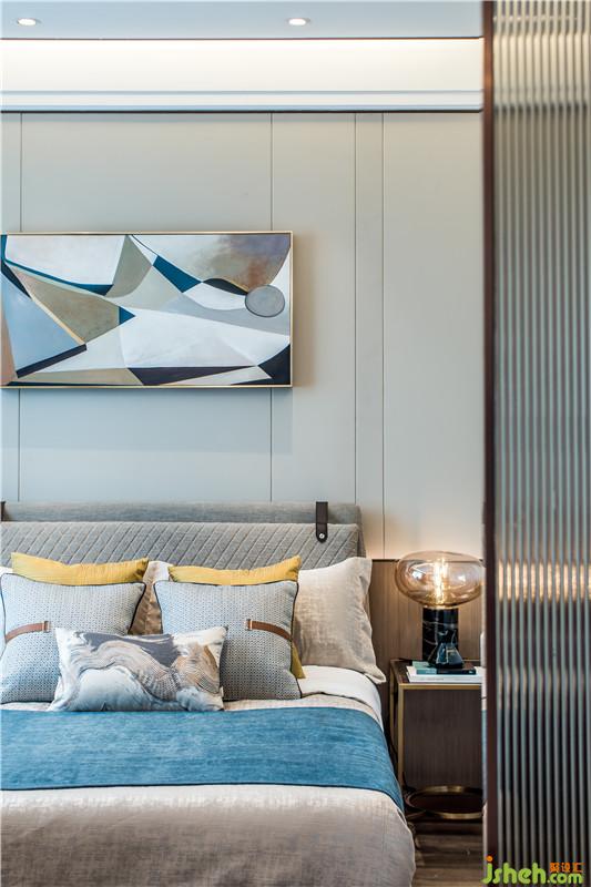 臥室空間設(shè)計(jì)融入了簡(jiǎn)約的幾何色塊,散發(fā)著時(shí)尚溫馨氣息,通過抽象飾物和雅致配色,予人安心怡然體驗(yàn)。室內(nèi)設(shè)計(jì)師