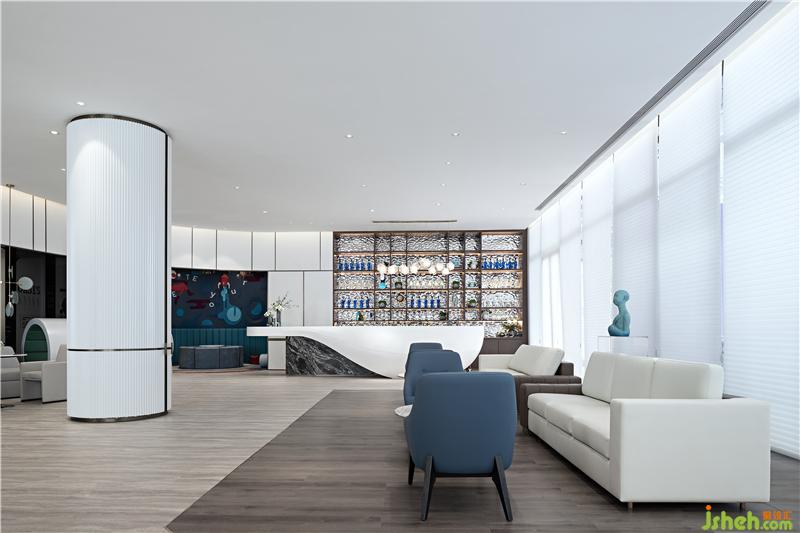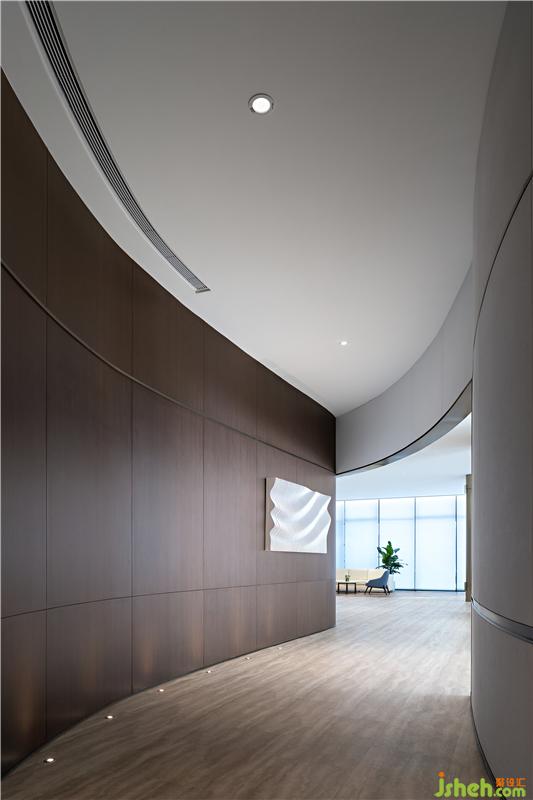 步入空間,兩種不同質(zhì)感和風(fēng)貌結(jié)合而成渾然的優(yōu)雅,金屬銅色有歷史的厚和韻,光亮的白、線條的了然分明有自在的輕盈。空間中,褶皺元素作為主體的裝飾元素被無(wú)限詮釋著,突破想象熟悉的邊界。設(shè)計(jì)師坦言:“對(duì)于某種純粹、簡(jiǎn)約和抽象形式美的追求,與直白的生活瑣碎保持一點(diǎn)距離,我們相信幾何有某種通向本質(zhì)的詩(shī)意?!焙?jiǎn)約元素與波浪褶皺紋理結(jié)合,裝飾畫(huà)變得立體,不再是某種形象的表達(dá),而更像是境的營(yíng)造,意在畫(huà)外。會(huì)所設(shè)計(jì)