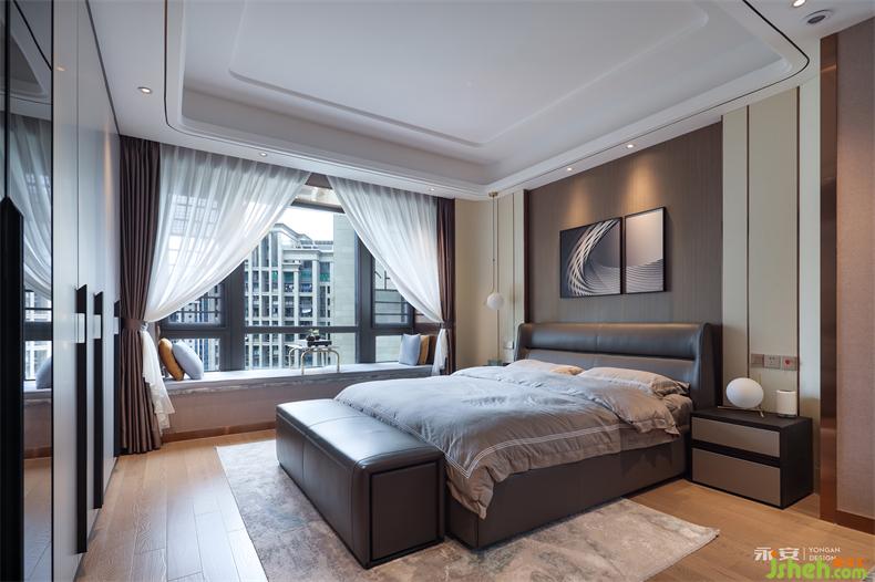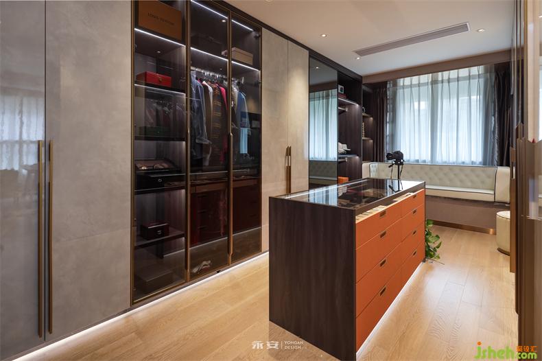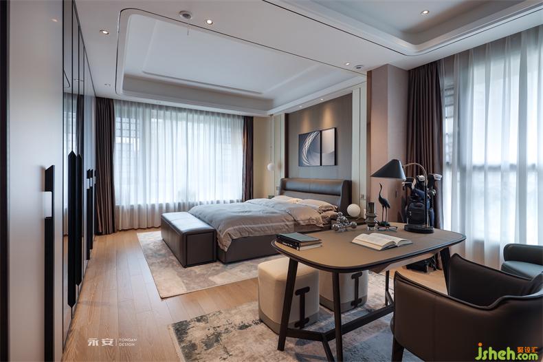 長輩房延續(xù)整體空間的色調,皮質硬包結合相應的床飾布藝,深圳豪宅設計營造優(yōu)雅沉穩(wěn)的空間氛圍。自然的中性色調中點綴亮色,營造整體中一貫的藝術時尚格調。如果說空間是一首詩,那么它將會是一首讓人寧靜的詩,讓人在繁忙的都市節(jié)奏里感受家的溫暖和靜謐。拋開形式,從情感層面直切內心,讓家回歸本真