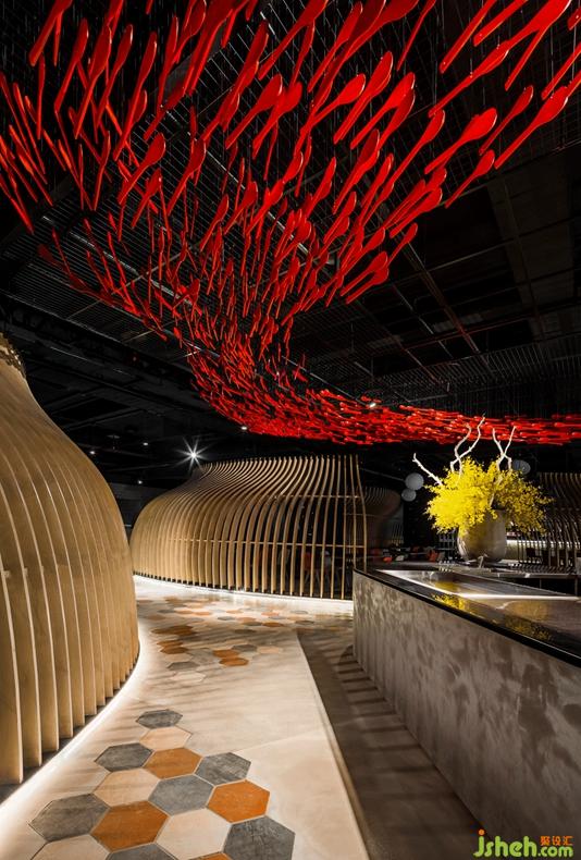 《道德經(jīng)》說,“有之以為利,無之以為用?!笨梢岳斫庥惺鞘址?,無是效用,在餐廳設(shè)計中,如果說圍合與打破是設(shè)計師的手法,那交錯與互滲就是效果。