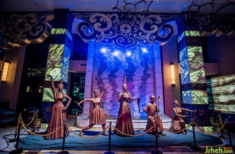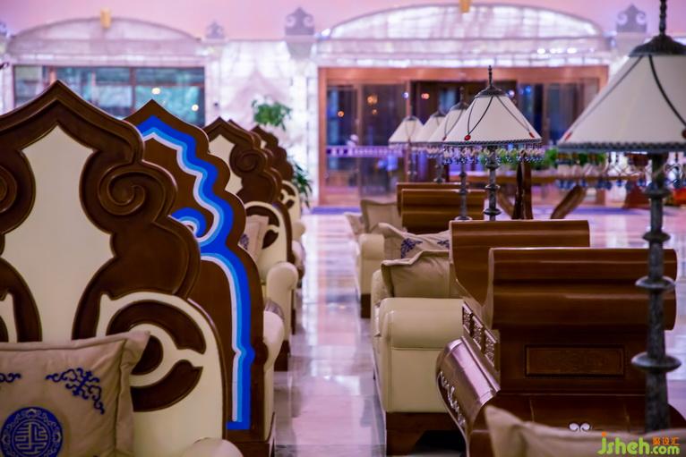 一座遼闊草原上的蒙古宮殿:蒙古利亞大酒店,坐落于錫林浩特市新區(qū)在酒店外門廳柱體以蒙古紋樣浮雕效果兩側(cè)擺設(shè)篝火爐寓意酒店最高歡迎禮儀,進入酒店大堂給客人的視覺震撼效果入口兩側(cè)設(shè)立蒙古特有的舞蹈頂碗舞、寓意著蒙古熱情好客的熱情,配以透光云石提高檔次、酒店大堂中部天井是酒店得天獨厚的優(yōu)勢、以馬頭為元素二次設(shè)計成燈具與天井呼應(yīng)顯現(xiàn)出民族濃厚味道、以柱子和民族掛板為主要裝飾重點、用GRG托模電鍍古銀紋樣與掛板上鑲嵌松石展現(xiàn)出蒙古民族喜好的配飾、大堂吧作為酒店的休閑洽談的空間、定時演奏蒙古長調(diào)呼麥給客人身心放松的體驗、壁燈及落地燈以蒙古包造型及蒙古頭飾松石為設(shè)計靈感二次設(shè)計酒店獨特燈具、客房以現(xiàn)代時尚結(jié)合民族文化打造、提倡綠色環(huán)保輕裝修重裝飾的設(shè)計理念、墻面硬裝采用環(huán)保涂料貝殼粉及蒙古紋樣定制石膏套線、軟裝燈具、家具、布藝以民族裝飾文化為重點、走廊提取草原花卉形態(tài)二次到地毯上給客人來到室內(nèi)草原的體驗。餐廳設(shè)計