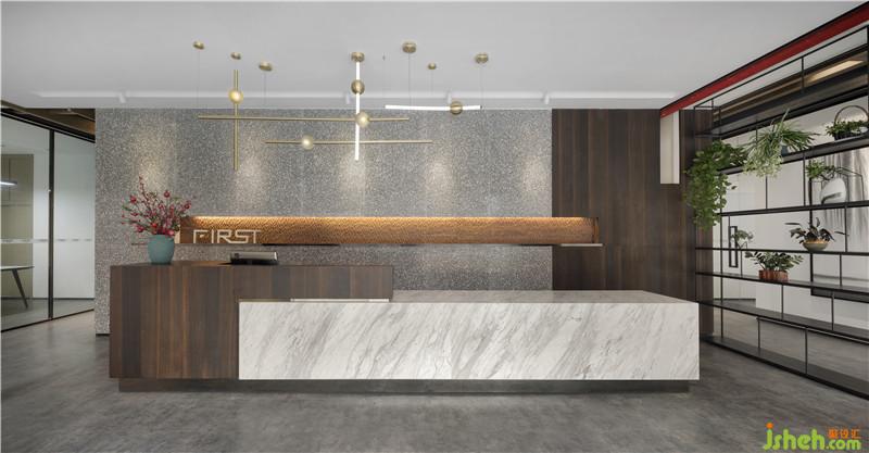 入口處空間布局是中軸對(duì)稱的。整個(gè)空間多采用玻璃門,在不影響日常使用的情況下,增加空間的可視范圍,視線開(kāi)闊,采光更好。