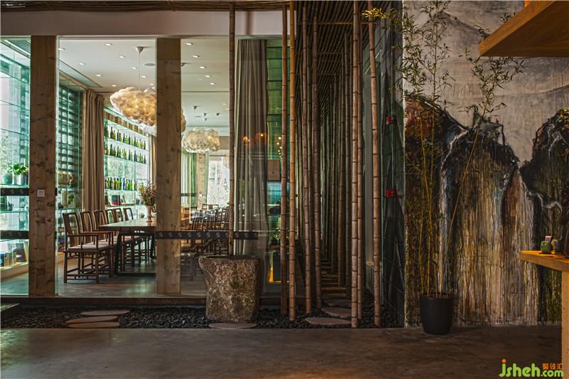 整個(gè)方案沿用“清心、清雅、清茗、真味”這一理念,材質(zhì)選擇和氛圍營(yíng)造極盡返璞歸真,在選材上,大量的竹子、夯土、鐵、水泥地板、美巖板、木、玻璃,突出一個(gè)“真”字,和餐飲的定位相吻合。