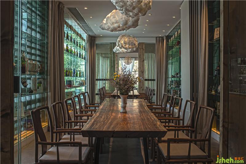 空間采用可分可合的功能布局,四個(gè)包房可以根據(jù)不同的需求而組合,大廳也是一個(gè)演播廳,抬高部分即是舞臺(tái),可以組織文學(xué)沙龍、文人雅集活動(dòng),整個(gè)餐廳也是個(gè)小的展館,墻壁上、木隔斷上可以懸掛掛畫或藝術(shù)品,燈光可以根據(jù)需要進(jìn)行調(diào)配,已成功舉辦幾期頗受歡迎的人文雅集活動(dòng),飲茶飲酒,撫琴賦詩,一同穿越回古人的生活方式中。餐廳設(shè)計(jì)