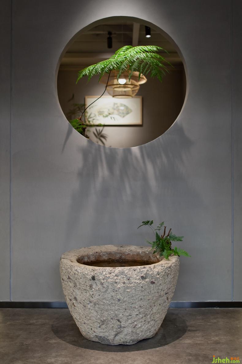 入口月亮窗,是一幅唯美畫面,一只金絲猴美月探出窗外,空間、人、植物、已分不清前后關(guān)系,使人在空間一入口即入畫中來。