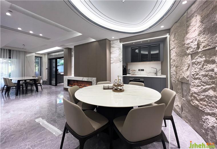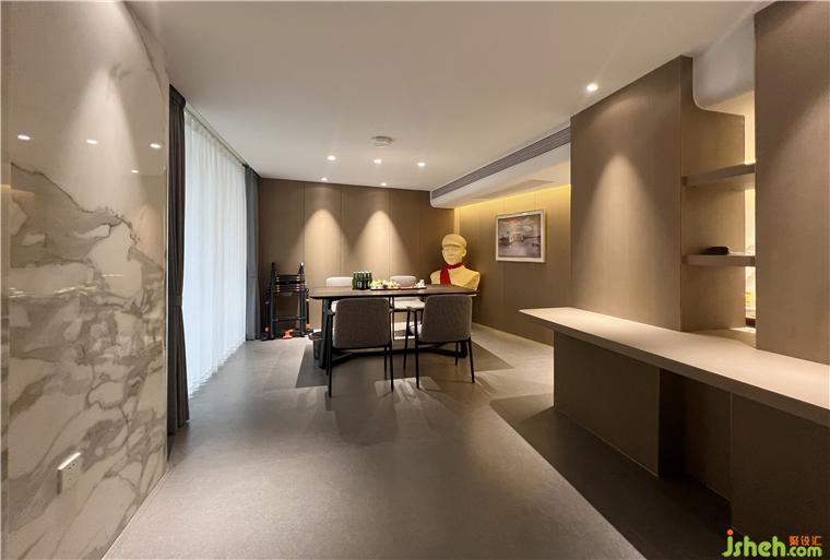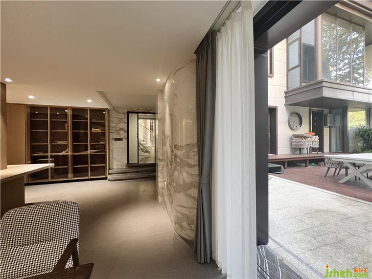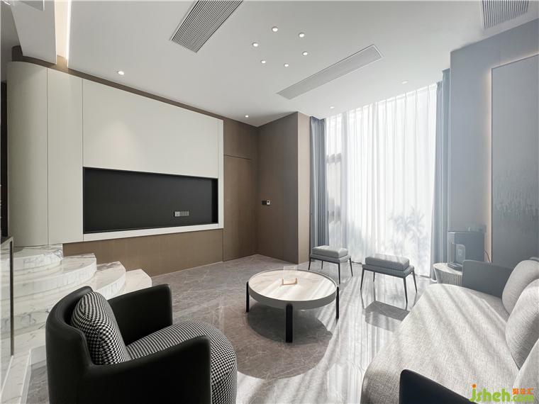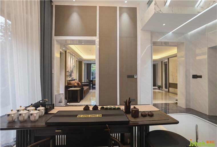 步入會(huì)客廳,現(xiàn)代與輕中式風(fēng)格的結(jié)合,簡(jiǎn)潔雅致,軟裝配飾的精心配搭,梧桐書舍設(shè)計(jì)極具質(zhì)感的材質(zhì)和面料,營造出獨(dú)有格調(diào)和藝術(shù)情懷。“東方”在這個(gè)空間中并非無名之狀,她是建筑的肌理,是文化的根骨,是材質(zhì)的純粹質(zhì)樸,是光影的虛實(shí)和隱喻,是自然在空間中的恣意生長,是移步異景和疏落有致,是人們身處其間的自由自在。