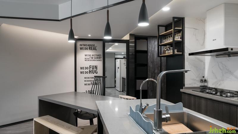 after:打掉了分隔廚房和次臥的非承重墻,沒有了阻隔,廚房設(shè)計(jì)為開放式廚房。將次臥的位置改造為餐廳,一來離廚房更近,使用起來方便,而來空間更大,用餐也不用像之前那么“憋屈”。室內(nèi)設(shè)計(jì)師