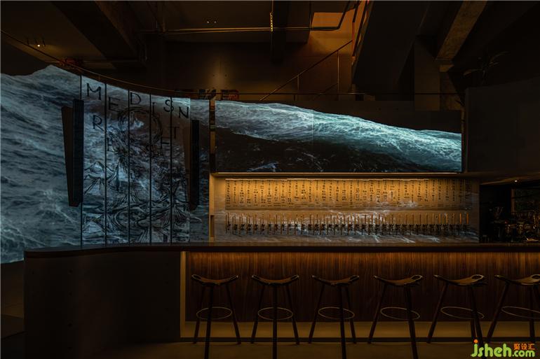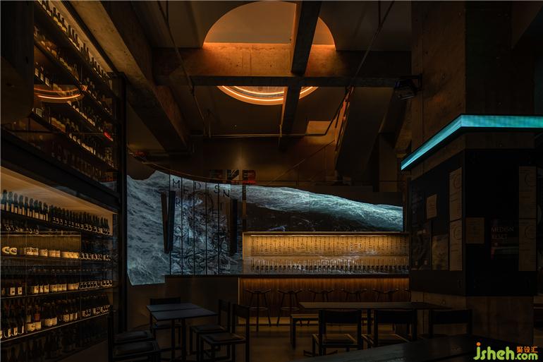 因此,整個(gè)空間也有了而比白日的狀態(tài)更能夠向后退讓的可能。成都藥廠精釀酒吧設(shè)計(jì)將內(nèi)部空間全部讓出,只在邊界上進(jìn)行考量,但物理的硬邊界不可避免地被作為視覺邊界的黑暗所替代,只能任由彌漫地光線在物質(zhì)空間的表面游走,直到抵達(dá)光線的深幽處。