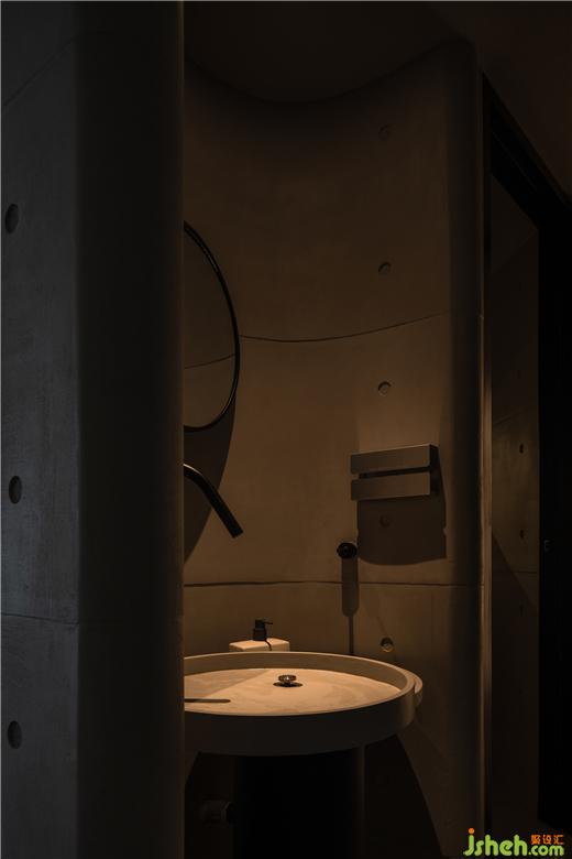連續(xù)的混凝土表面,簡(jiǎn)潔而富于韻律的窗洞開口,在光線的映射下,使空間漂浮起來,有了進(jìn)入未來或無垠宇宙的可能。
