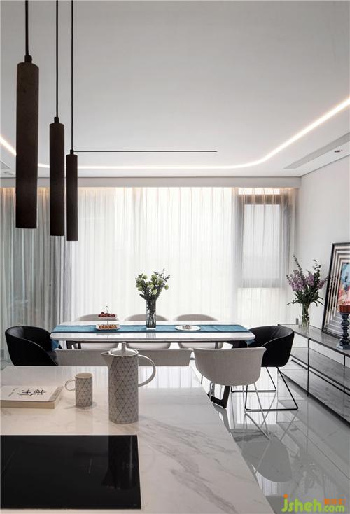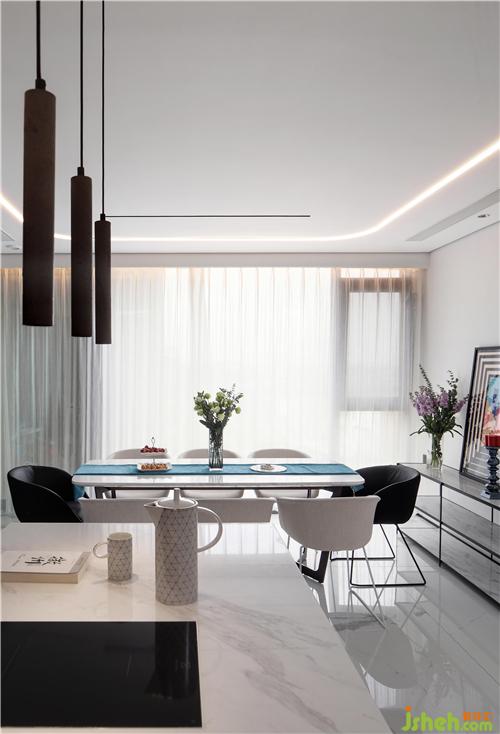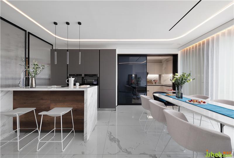 透著餐廳的光,紫竹影在玻璃隔斷上。女主人正在島臺(tái)為小孩做早餐,自由自在的一天從這個(gè)西式的早餐開(kāi)始,怡然、愜意??拷泵娌AТ笆羌彝?人長(zhǎng)餐桌南京裝修設(shè)計(jì),這正是設(shè)計(jì)師記憶中兒時(shí)情景的設(shè)計(jì):同樣的傍晚,一家人坐在這里享用晚餐,看著窗外的景色與天空漸黑的過(guò)程,爸爸對(duì)著兒子、女兒說(shuō)起曾經(jīng)的故事......