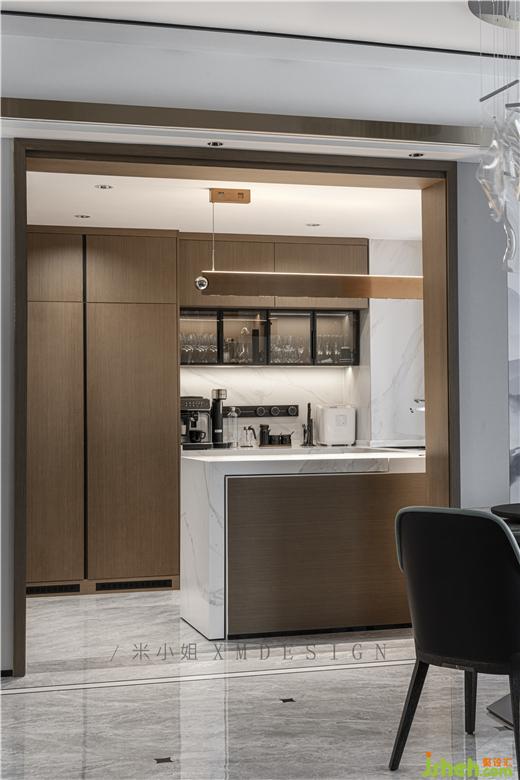 廚房墻體使用大理石花紋,如悠悠水墨般盡顯古韻,圓形餐桌搭配中式吊燈,古典寧靜的用餐區(qū)溫馨治愈。開放式廚房的設(shè)計(jì),家裝設(shè)計(jì)流暢的動線符合人體運(yùn)動學(xué)原理,更為便捷滿足。