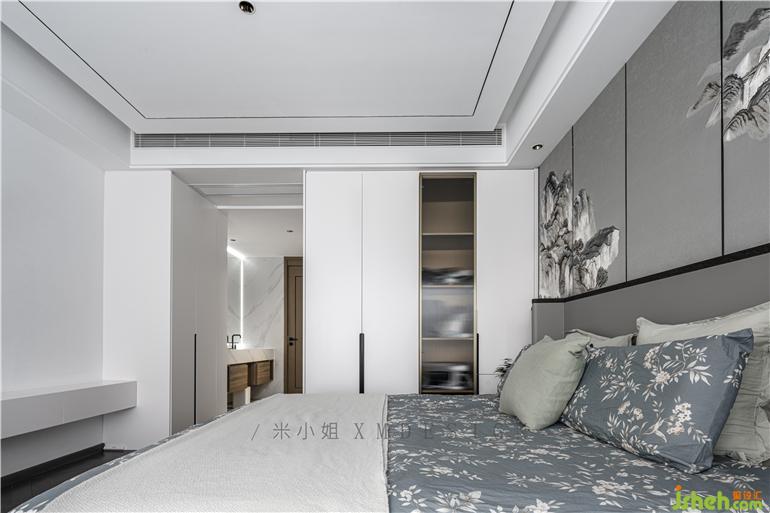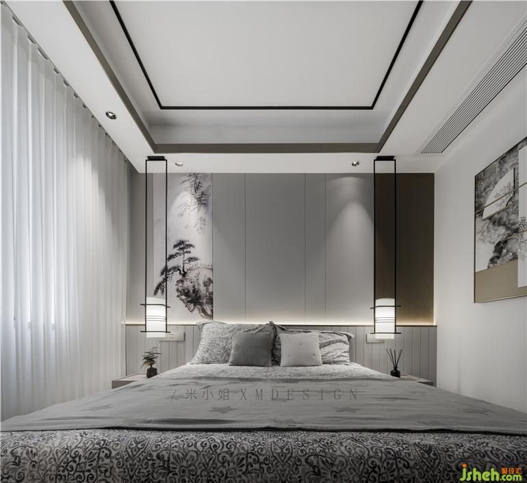 次臥多重中式元素輔以軟包點(diǎn)綴,中式床頭搭配錯段的山水畫,家裝設(shè)計(jì)讓整體空間明亮通透,于不刻意間刻畫出最極致的東方生活美學(xué)。