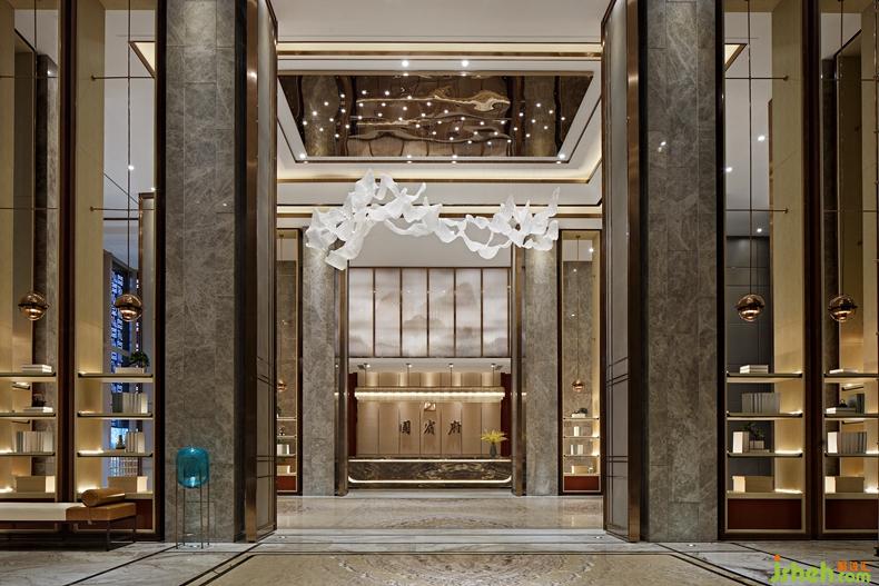 入口門廳在布局上講究對稱,強調(diào)元素的秩序感展現(xiàn)穩(wěn)重大氣的格調(diào)風(fēng)范。迎面看到的是氣派的博古架,頂天立地,區(qū)分空間,起到欲揚先抑的效果。極具視覺張力的大型吊燈,優(yōu)美流動,與山水背景動靜相宜,光彩交織,盡顯東方獨有的品質(zhì)感與儀式感。設(shè)計公司